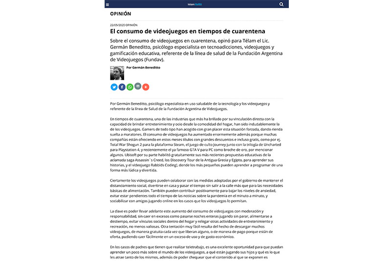 Soy especialista en el uso saludable de la tecnología, los aspectos positivos de los videojuegos así como del uso excesivo y las tecnoadicciones.